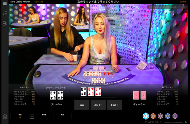 「CASINO HOLD’EM」も同じルールなのですが、「SOHO CASINO HOLDEM」の方が、ディーラーとの距離感が近く、より本場のカジノのような雰囲気を体感することが可能です。