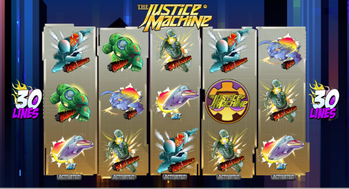 「Justice Machine」は1980年代にアメリカで出版されたコミックが原作です。物語の中の様々なヒーローがゲーム中にも登場し、それぞれの特殊能力を用いて配当を揃える手助けをしてくれます。