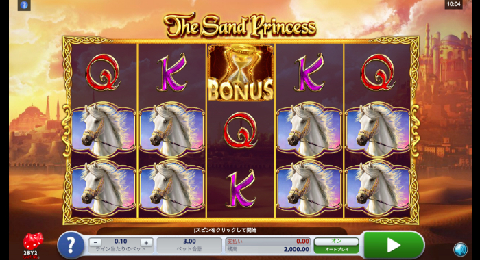 「The Sand Princess」は砂漠の女王がテーマとなっているスロットです。3×1サイズの縦長ワイルドが頻繁に出現するため、配当の獲得率は高めでコイン持ちも悪くありません。