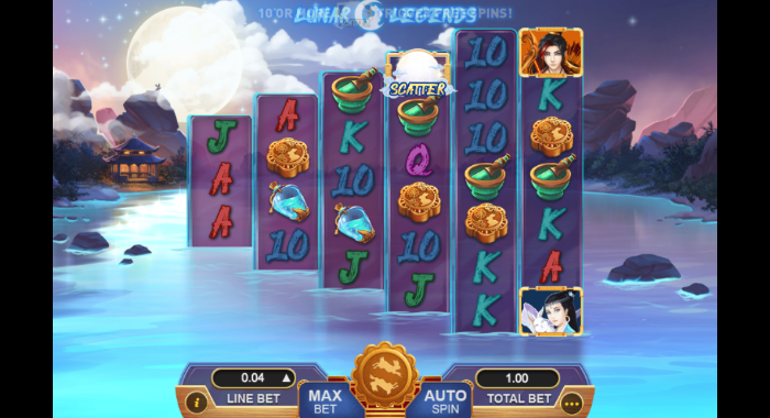 「LUNAR LEGENDS」は月を題材としたスロットで、6本あるリールはそれぞれ長さが異なり、右側に行けばいくほど列の数が増えていくという変則的な形をしています。ペイラインは250通りと多く設定されている他、フリースピンも最大250回まで獲得が可能です。