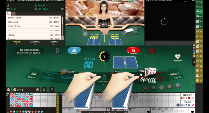 「Virtual Squeeze Baccarat」は前述したバーチャルシリーズのバカラバージョンですが、通常のバカラにはないスクイーズという機能が付いています。このゲームではどのプレイヤーもスクイーズする権利があるので、大金を賭けた時などは予想が的中したか焦らしながら確認するなどの楽しみ方ができます。