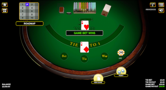 カードゲームの「カジノ・ウォー」でベットができます。ルールが単純ですぐに結果が出るため、欧米でも人気のゲームです。