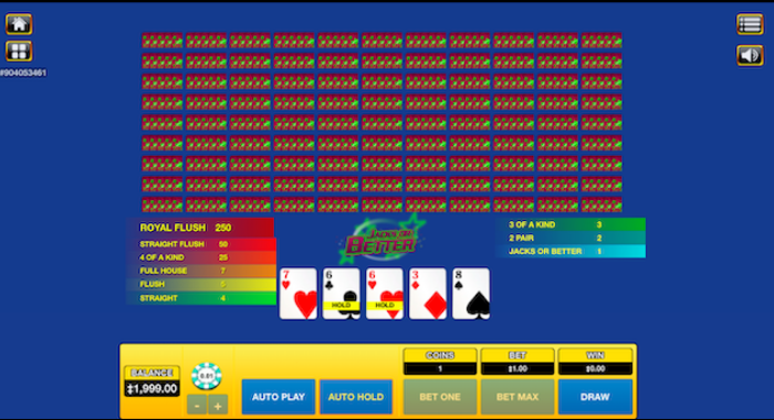 ビデオポーカーができる機種です。還元率は99.54%となっていて、最大800倍の配当を獲得することができます。
