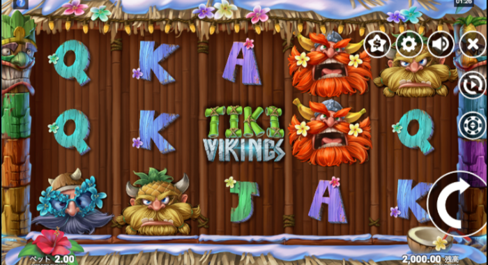 「Tiki Vikings」はハワイを彷彿させるような音楽と3人の海賊の図柄、そしてリスピンによる配当増加のチャンスが大きな特徴となっています。