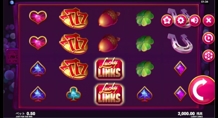 「Lucky Links」はフリースピンがない代わりにリスピンによる配当の増加が狙える機種です。