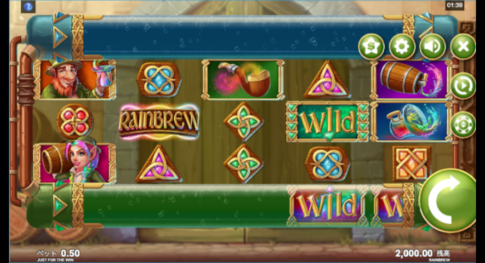 「Rainbrew」は3×5という一般的なリール構成に加えて、第2〜第4リールにかけては左右に回転し、ワイルドとスキャッターしか出現しない特殊なリールが存在します。