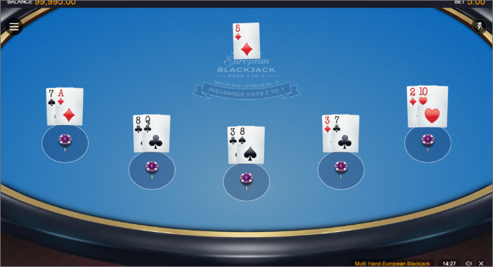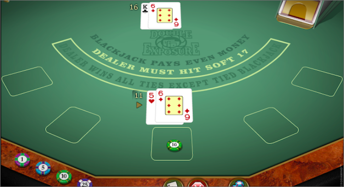 「Multi Hand Double Exposure」は、ディーラーの手札が初めから2枚ともオープンになっています。そのため、通常のブラックジャックよりも「ヒットするかしないか?」を判断しやすく、プレイヤーに有利です。