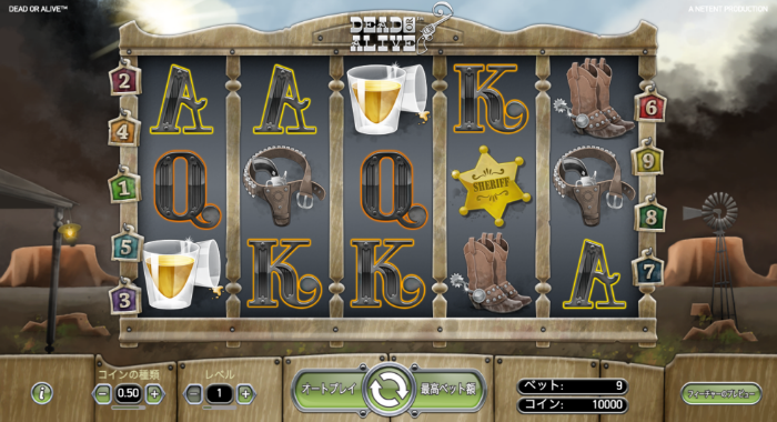 西部劇をテーマにした人気スロット「Dead or Alive」の2作目。スキャッターが3つ以上揃えば、3種類から選べるフリースピンに突入します。