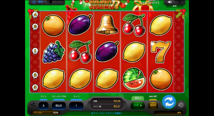 「Golden 7 Christmas」は昔ながらのスロットゲームをクリスマス用にアレンジしています。