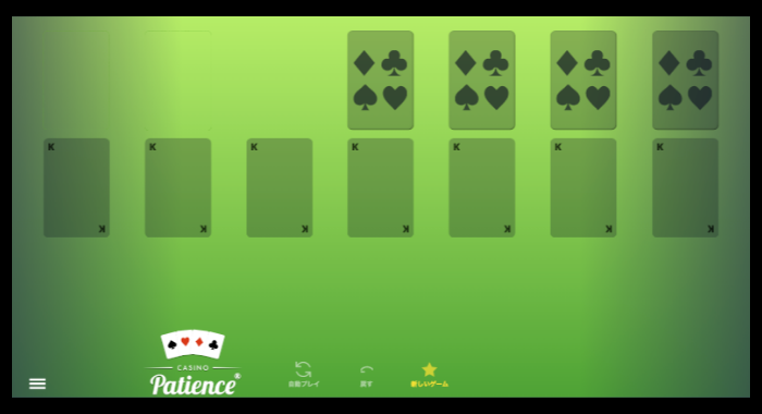 「Casino Patience Solitaire」は俗に言うトランプゲームのソリティアです。山札をめくってカードを大きい数字から順に並べていき、最終的に組札として各スートごとに分けて「A」から昇順でカードをまとめます。