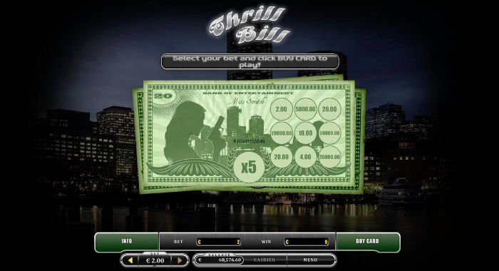 「Thrill Bill」は高額配当が狙えるスクラッチカードです。最初に賭け金を決めてスクラッチカードを購入し、銀箔を削って同じ数字が3つ揃うかを確認します。