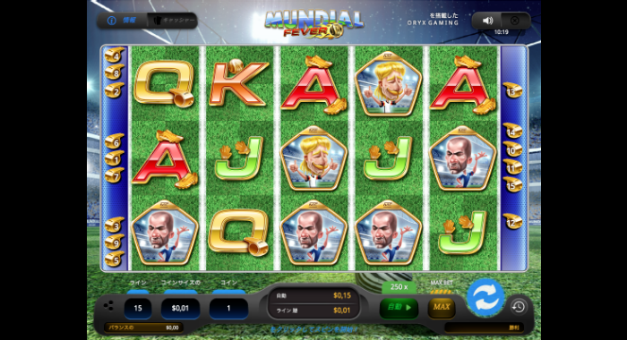 最後はサッカーをテーマとした「Mundial Fever Light」です。このゲームは最初に自身がどのチームでプレイするかを決め、フリースピンへ突入すると対戦相手を決めてサッカーの試合を開始するというユニークな内容となっています。