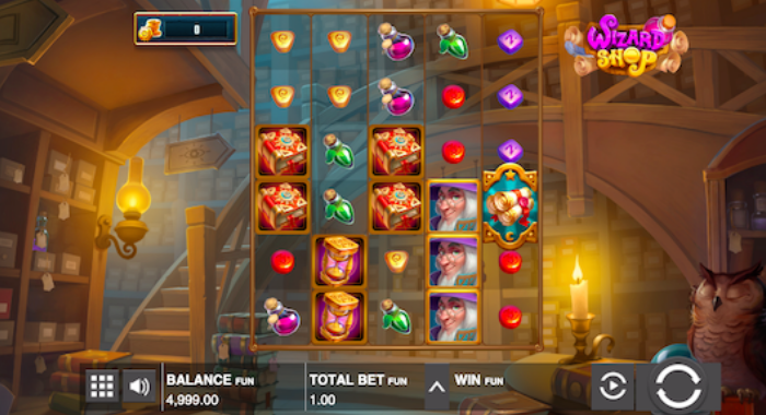 魔法のお店がテーマのビデオスロットです。還元率は97%となっていて、フリースピン発動時に好みの魔法道具を選び爆発力を高めることができます。
