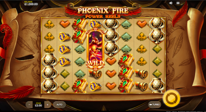 不死鳥がテーマのビデオスロットです。ワイルドシンボルが翼シンボルに隣接して止まると、翼シンボルがワイルド化して配当UPに貢献します!