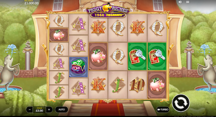 リッチな豚がテーマの落ちゲータイプのスロットです。フリースピンが発動するとスピン回数とマルチプライヤーがルーレットで決まり、連鎖ごとにマルチプライヤーが増加していきます。