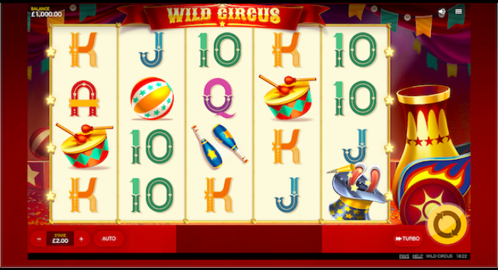 サーカス団がテーマのビデオスロットです。還元率は96.18%となっていて、スキャッターが揃うとサーカスならではのボーナスゲームが楽しめます。