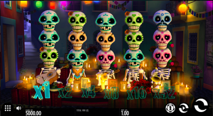骸骨がテーマの落ちゲースロットです。シンボルが崩れ落ちて積み重なるスピン時の演出がユニークです。