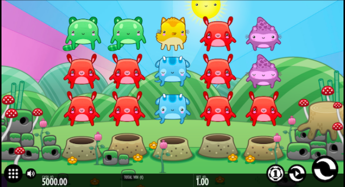 ゆるキャラのような世界がテーマのスロットです。還元率は97.10%で、1リール全体がワイルド化するビッグシンボルが勝利に導きます。