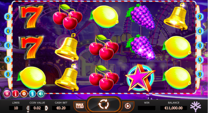 「Jokerizer」は、遊園地のジョーカーがテーマのスロットです。配当が成立するとギャンブル機能のようなジョーカーモードに突入します。ジョーカーモードでは軍資金を溶かさずに、獲得配当でスピンすることが可能です。