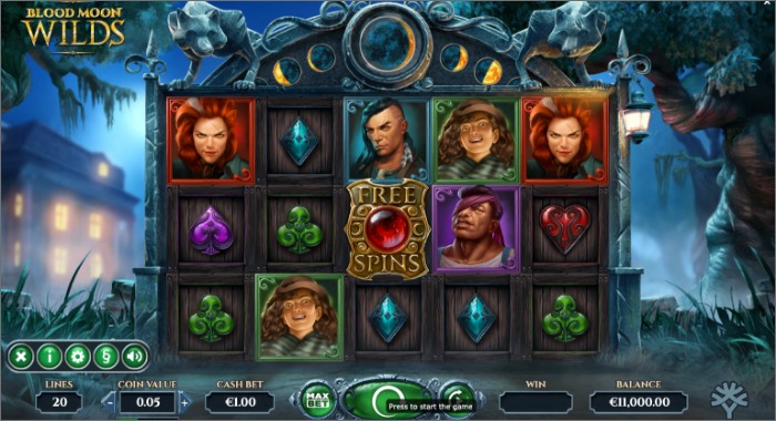 狼男がテーマのビデオスロットです。スロット最上部の月のカレンダーによって様々なフィーチャーが発動します。