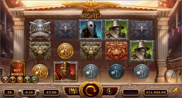 ローマのコロッセオがテーマのビデオスロットです。ボーナス購入機能が搭載されていて、2種類のフリースピンが楽しめます。