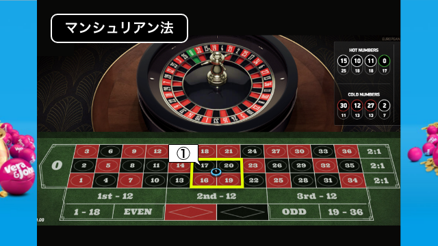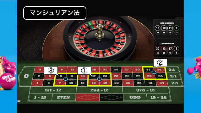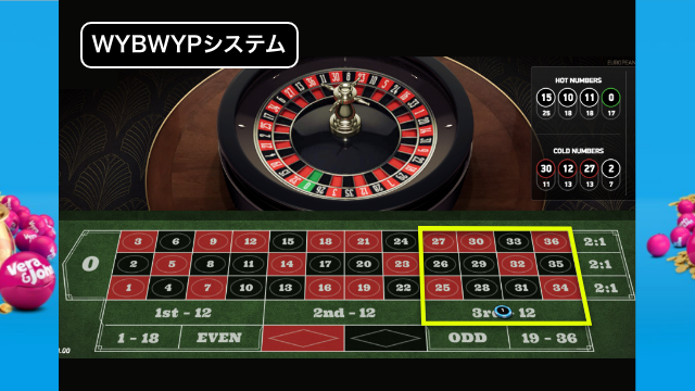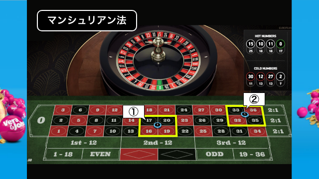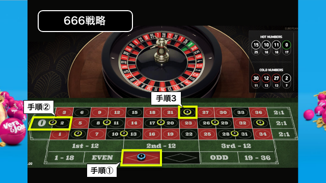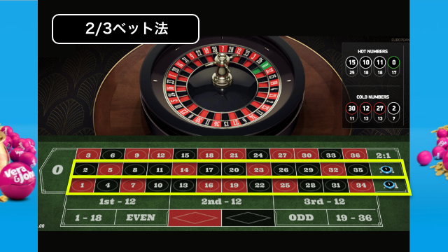 ベットする数字が多いので暗記するのは大変なので、メモ帳や画像を用意して使用しましょう。1単位1ドルとした場合に得られる利益は27ドル、負けた場合の損失は9ドルとなります。