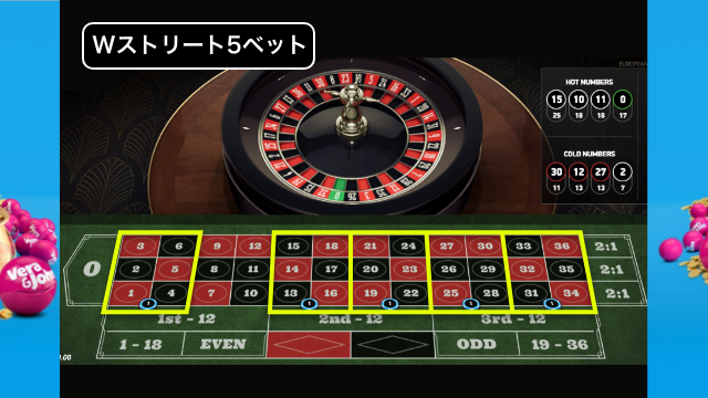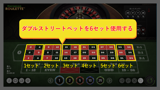 まずはダブルストリートベットを使用します。