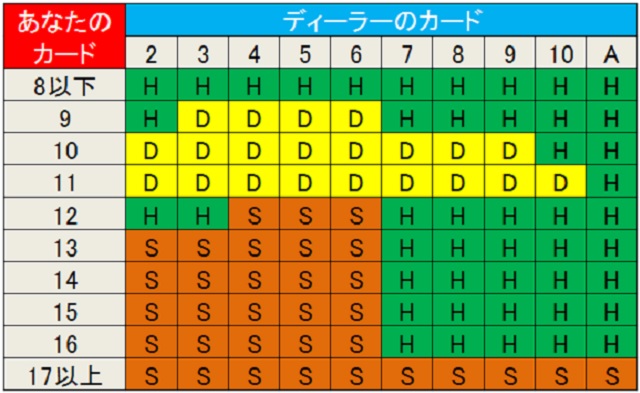 ブラックジャックのベーシックストラテジーは、自分の手札とディーラーのオープンカードを元に、確率が高いアクションを予めきめておくという戦略です。