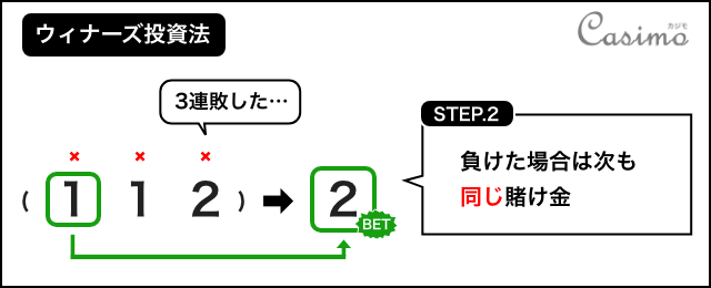 さらに連敗した場合、次ゲームの賭け金は変えません。