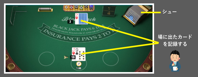 バカラ専用の必勝法でもカウンティングについては解説しましたが、ブラックジャックのカウンティングも根本は同じです。場に出るカードを記録し、シューの中や伏せてあるディーラーのホールカードを予測します。