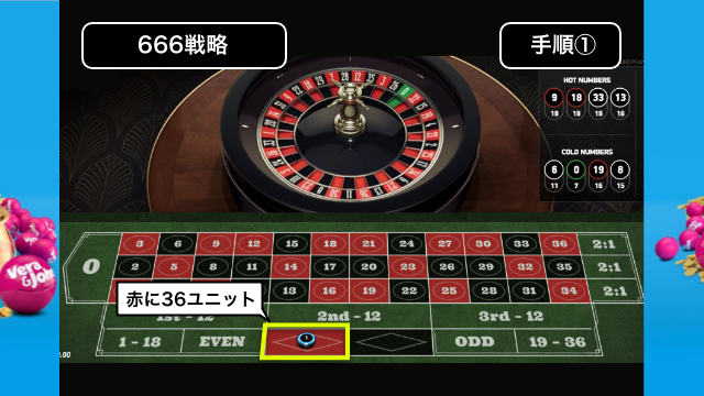 666戦略は、ルーレットで使う「赤黒賭け・スプリットベット・ストレートベット」の3つの賭け方を組み合わせた必勝法です。