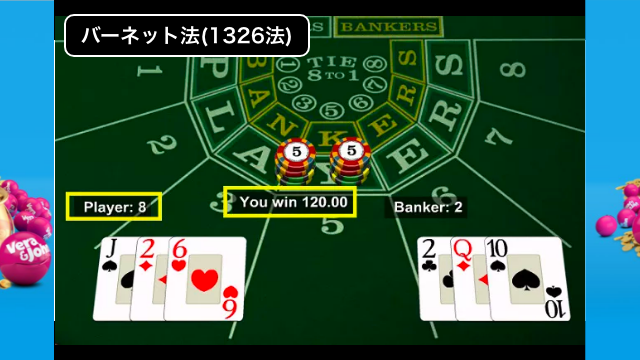 - バーネット法は連勝時に「1,3,2,6」の順に賭け金を変える必勝法