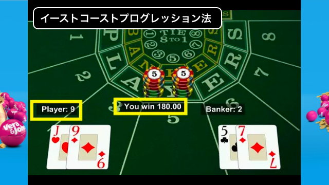 イーストコーストプログレッション法は、連勝時に次回ゲームへ利益の半分を上乗せする必勝法です。