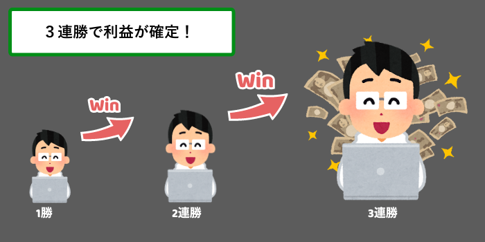 攻めの勝負を制すれば守りの勝負で痛手を負わないので、3連勝した時点で利益が確定します。