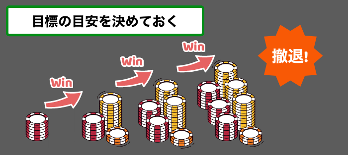 連勝数にこだわらず、利益が確定したら一度使用をやめ、最初から仕切り直すかゲームを中断してみてください。ダラダラと負けるまで続けるような賭け方よりも、トータル収支は良くなります。