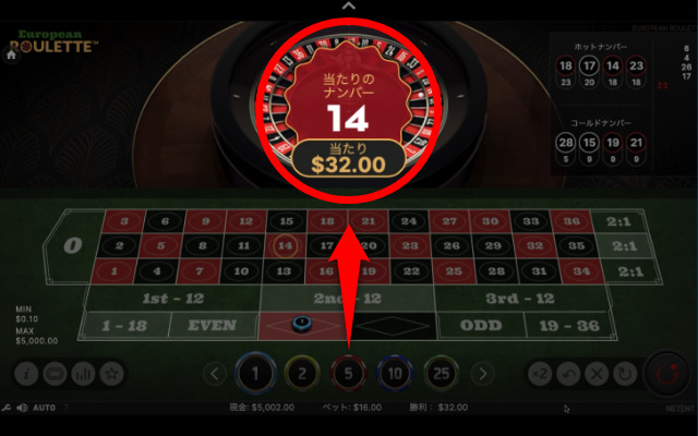 このことから分かるとおり、手持ち資金が少ないのに$5や$10といった賭け金でスタートするとすぐに破産してしまうので、スタート賭け金は手持ち資金にあわせて調整するようにしましょう。