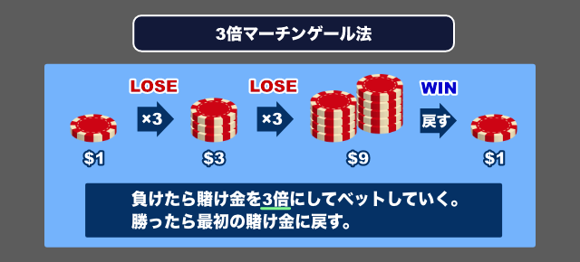 賭け倍数を増やす(3倍マーチンゲール・グランマーチンゲール)