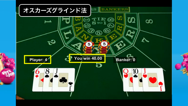 オスカーズグラインド法は、1セットのベット額を事前に決めてからゲームを開始し、勝敗によってベット額を変える必勝法です。